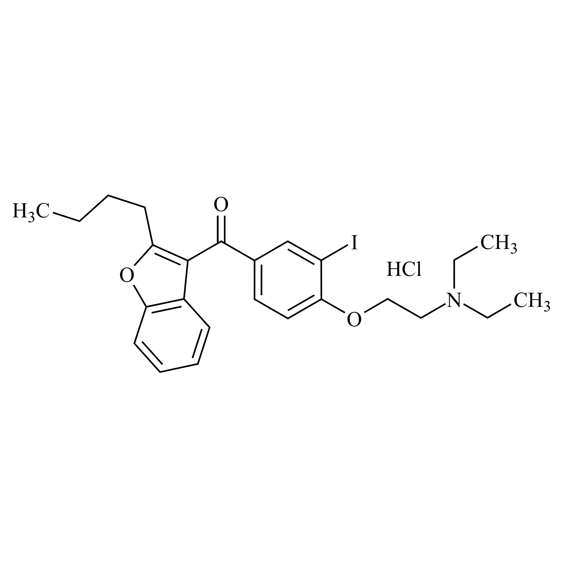Synonyms: Amiodarone Imp. C (EP), (2-Butylbenzofuran-3-yl)[4-[2-(diethylamino)ethoxy]-3-iodo-phenyl]methanone Hydrochloride, Amiodarone Hydrochloride Imp. C (EP) as Hydrochloride, Amiodarone Hydrochloride Impurity C as Hydrochloride, Amiodarone Impurity C as Hydrochloride,(2-Butylbenzofuran-3-yl)[4-[2-(diethylamino)ethoxy]-3-iodophenyl]methanone Hydrochloride, Amiodarone Hydrochloride Imp. C (EP)