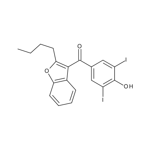 Synonyms: Amiodarone Imp. D (EP), Amiodarone USP Related Compound D, Amiodarone USP RC D, (2-Butylbenzofuran-3-yl)(4-hydroxy-3,5-diiodophenyl)methanone, Amiodarone Related Compound D, Amiodarone Hydrochloride Impurity D, Amiodarone Impurity D,(2-Butylbenzofuran-3-yl)(4-hydroxy-3,5-diiodophenyl)methanone, Amiodarone Hydrochloride Imp. D (EP)