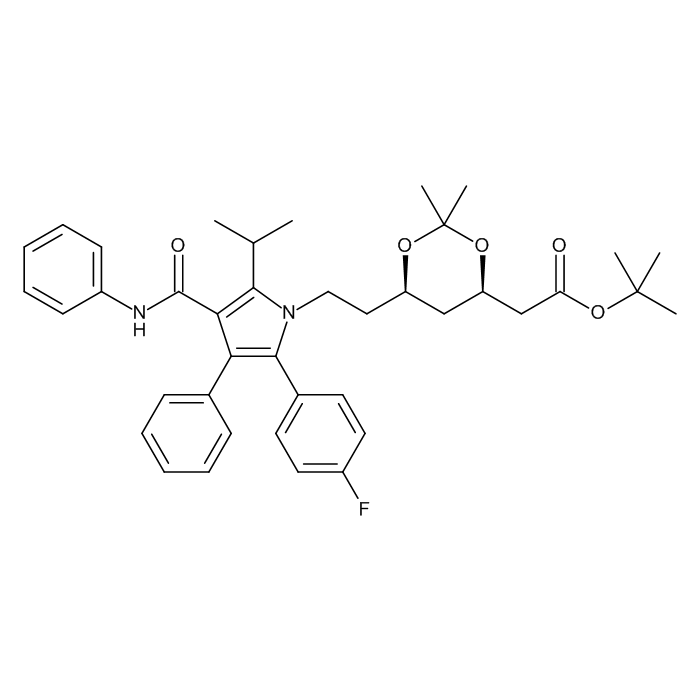 Synonyms: 1,1-Dimethylethyl (4R-cis)-6-[2-[2-(4-Fluorophenyl)-5-(1-methylethyl)-3-phenyl-4-[(phenylamino)carbonyl]-1-H-pyrrol-1-yl]ethyl]-2,2-di-methyl-1,3-dioxane-4-acetate, Atorvastatin Related Compound I, Atorvastatin Calcium Impurity I, Atorvastatin Impurity I