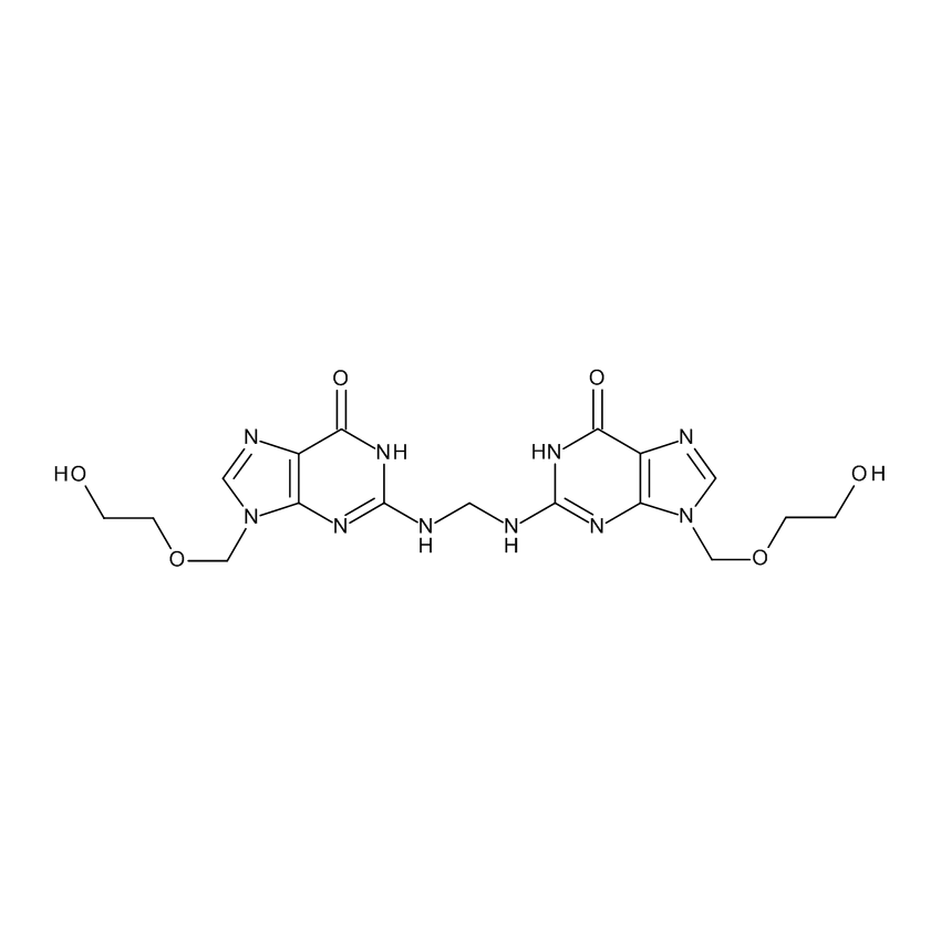 Synonyms: 2,2′-[Methylenediimino]bis[9-[(2-hydroxyethoxy)methyl]-1,9-dihydro-6H-purin-6-one], 9-(2-Hydroxyethoxymethyl)-2-[[[9-(2-hydroxyethoxymethyl)-6-oxo-3H-purin-2-yl]amino]methylamino]-3H-purin-6-one, Aciclovir N-Methylene Dimer, Acyclovir N-Methylene Dimer
