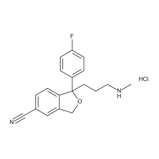 Synonyms: Citalopram Hydrobromide Imp. D (EP), Citalopram Imp. D (EP), Citalopram USP Related Compound D, Citalopram USP RC D, (1RS)-1-(4-Fluorophenyl)-1-[3-(methylamino)propyl]-1,3-dihydroisobenzofuran-5-carbonitrile Hydrochloride, Citalopram Hydrobromide Imp. D (EP) as Hydrochloride, Desmethylcitalopram Hydrochloride, 1-(4-Fluorophenyl)-1,3-dihydro-1-[3-(methylamino)propyl]-5-isobenzofurancarbonitrile monohydrochloride, Lu 11-109C, Citalopram Related Compound D as Hydrochloride, Citalopram Hydrobromide Impurity D as Hydrochloride, Escitalopram Oxalate Impurity D as Hydrochloride, Citalopram Impurity D as Hydrochloride, Escitalopram Impurity D as Hydrochloride