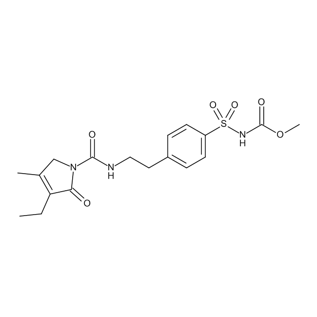 Synonyms: Glimepiride Imp. C (EP), Glimepiride USP Related Compound C, Glimepiride USP RC C, Methyl [[4-[2-[[(3-Ethyl-4-methyl-2-oxo-2,3-dihydro-1H-pyrrol-1-yl)carbonyl]amino]ethyl]phenyl]sulphonyl]carbamate, Glimepiride Carbamate, Glimepiride Related Compound C, Glimepiride Impurity C