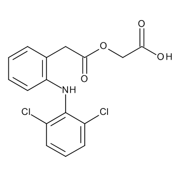 Synonyms: Benzeneacetic acid, 2-[(2,6-dichlorophenyl)amino]-, carboxymethyl ester (9CI), 2-[[2-[(2,6-Dichlorophenyl)amino]phenyl]acetoxy]acetic acid, Aceclofar, Airtal, Biofenac, Bristaflam, Falcol, Gerbin, PR 82/3, Tresquim, [[[[[[[2-[(2,6-Dichlorophenyl)amino]phenyl]acetyl]oxy]acetyl]oxy]acetyl]oxy]acetic Acid (Diacetic Aceclofenac), [[[[[[[2-[(2,6-Dichlorophenyl)amino]phenyl]acetyl]oxy]acetyl]oxy]acetyl]oxy]acetic Acid, Aceclofenac Imp. H (EP), Diacetic Aceclofenac, 2-[(2,6-Dichlorophenyl)amino]benzeneacetic acid 2-[2-(carboxymethoxy)-2-oxoethoxy]-2-oxoethyl ester