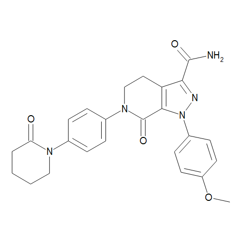 Synonyms: 4,5,6,7-Tetrahydro-1-(4-methoxyphenyl)-7-oxo-6-[4-(2-oxo-1-piperidinyl)phenyl]-1H-Pyrazolo[3,4-c]pyridine-3-carboxamide, 4,5,6,7-Tetrahydro-1-(4-methoxyphenyl)-7-oxo-6-[4-(2-oxo-1-piperidinyl)phenyl]-1H-pyrazolo[3,4-c]pyridine-3-carboxamide, 1-(4-Methoxyphenyl)-7-oxo-6-[4-(2-oxopiperidin-1-yl)phenyl]-4,5,6,7-tetrahydro-1H-pyrazolo[3,4-c]pyridine-3-carboxylic acid amide, Apixaban, BMS 562247-01, Eliquis