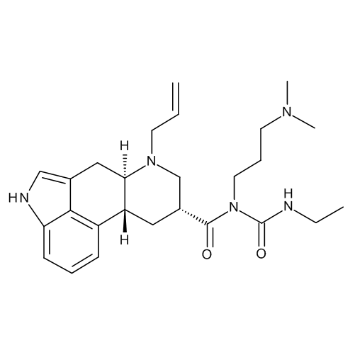 Synonyms: Cabergoline, 1-Ethyl-3-[3-(dimethylamino)propyl]-3-[[(6aR,9R,10aR)-7-(prop-2-enyl)-4,6,6a,7,8,9,10,10a-octahydroindolo[4,3-fg]quinolin-9-yl]carbonyl]urea