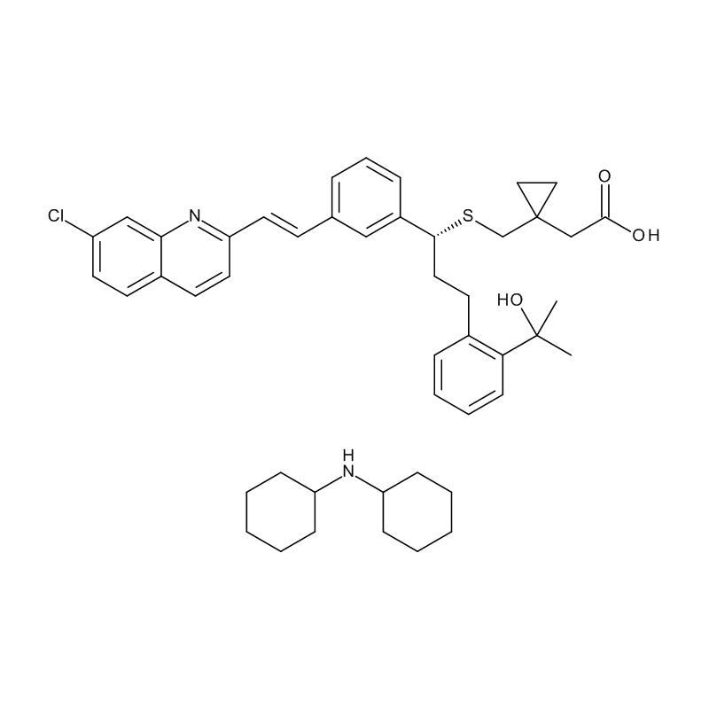 Synonyms: Montelukast Dicyclohexylamine, Cyclopropaneacetic acid, 1-[[[(1R)-1-[3-[(1E)-2-(7-chloro-2-quinolinyl)ethenyl]phenyl]-3-[2-(1-hydroxy-1-methylethyl)phenyl]propyl]thio]methyl]-, compd. with N-cyclohexylcyclohexanamine (1:1) (9CI), 2-[1-[[[(1R)-1-[3-[(1E)-2-(7-Chloro-2-quinolinyl)ethenyl]phenyl]-3-[2-(1-hydroxy-1-methylethyl)phenyl]propyl]thio]methyl]cyclopropyl]acetic acid dicyclohexylamine salt, Montelukast dicyclohexylamine salt