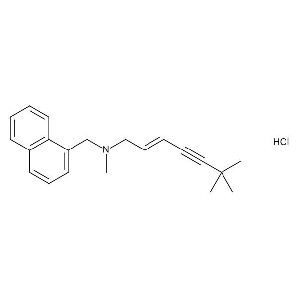 Synonyms: Terbinafine Hydrochloride, 1-Naphthalenemethanamine, N-[(2E)-6,6-dimethyl-2-hepten-4-ynyl]-N-methyl-, hydrochloride (9CI), 1-Naphthalenemethanamine, N-(6,6-dimethyl-2-hepten-4-ynyl)-N-methyl-, hydrochloride, (E)-, Bramazil, Bramizil, Lamisil, Muzonal, Terbina