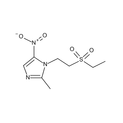 Synonyms: 1-[2-(Ethylsulfonyl)ethyl]-2-methyl-5-nitro-1H-imidazole, 1-[2-(Ethylsulfonyl)ethyl]-2-methyl-5-nitroimidazole, 1-(Ethylsulfonylethyl)-2-methyl-5-nitroimidazole, Bioshik, CP 12574, Ethyl [2-(2-methyl-5-nitroimidazol-1-yl)ethyl] sulfone, Fasigin, Fasigyn, Glongyn, Pletil, Simplotan, Sorquetan, Tindamax, Tini 300, Tinidazol, Tinidazole, Tiprogyn, Tricolam, Trimonase
